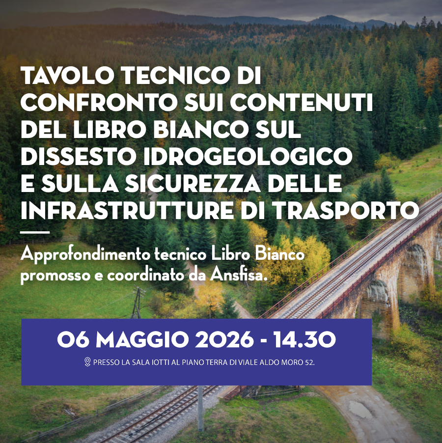 Nel pomeriggio, a partire dalle 14.30, la vicina sala Nilde Iotti ospiterà un tavolo tecnico sul Libro Bianco, il documento tecnico-scientifico promosso da ANSFISA in collaborazione con RemTech Expo per contribuire al dibattito nazionale sulla sicurezza del territorio, sulla resilienza delle infrastrutture e sulla prevenzione dei rischi.