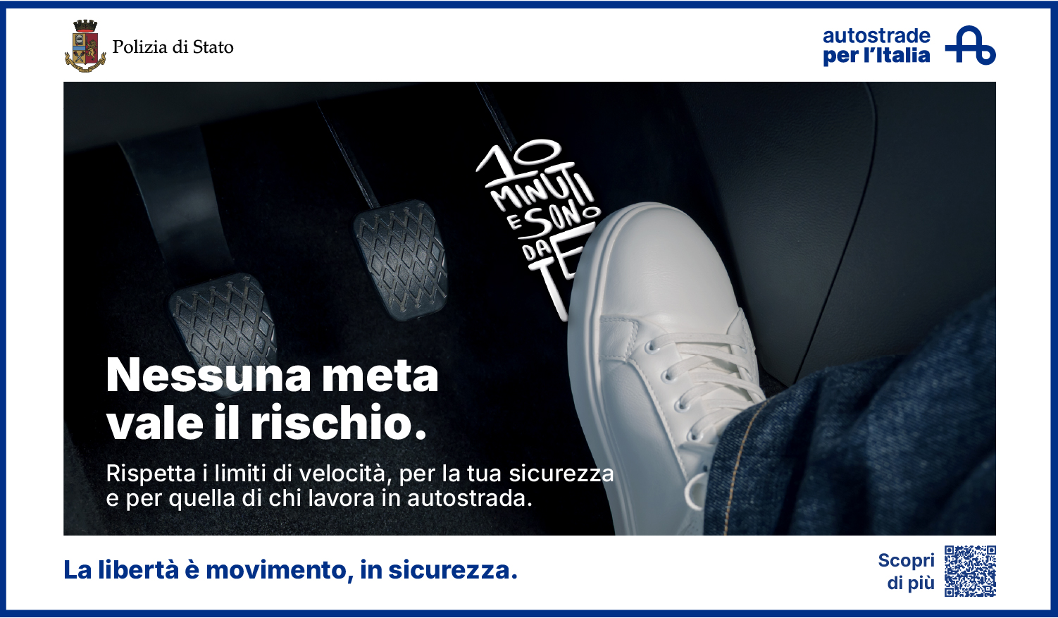 Attraverso un QR code, la campagna rimanda inoltre a una sezione dedicata su autostrade.it, con consigli utili per i comportamenti di guida corretti, approfondimenti sui principali fattori di rischio e contenuti sul tema della sicurezza stradale rivolti sia agli automobilisti sia agli autotrasportatori.