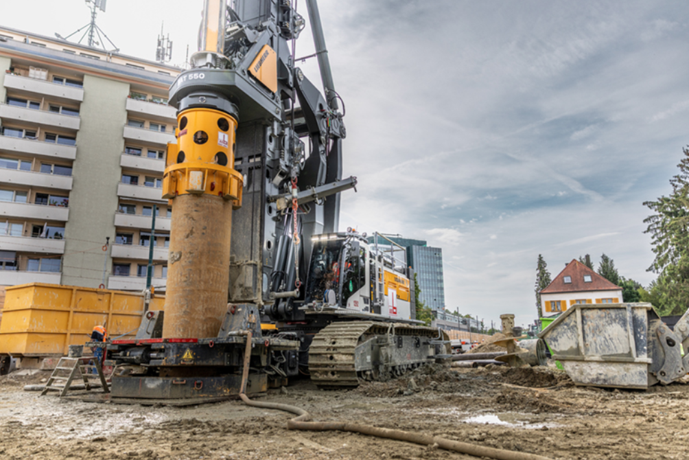 L'ampliamento della linea metropolitana U5 da Laimer Platz a Pasing è un importante progetto infrastrutturale per Monaco. Le grandi dimensioni delle fondazioni su pali per tre nuove stazioni ferroviarie, dei pozzi di partenza e dei blocchi di tenuta rendono la costruzione molto impegnativa. Max Bögl utilizza la perforatrice Liebherr LB 55 con metodo di perforazione Kelly per installare un totale di 1.400 pali secanti gettati in opera con un diametro fino a 1.500 millimetri e una profondità fino a 50 metri. Con 550 kilonewton-metri, la rotativa fornisce la coppia necessaria per l'applicazione.